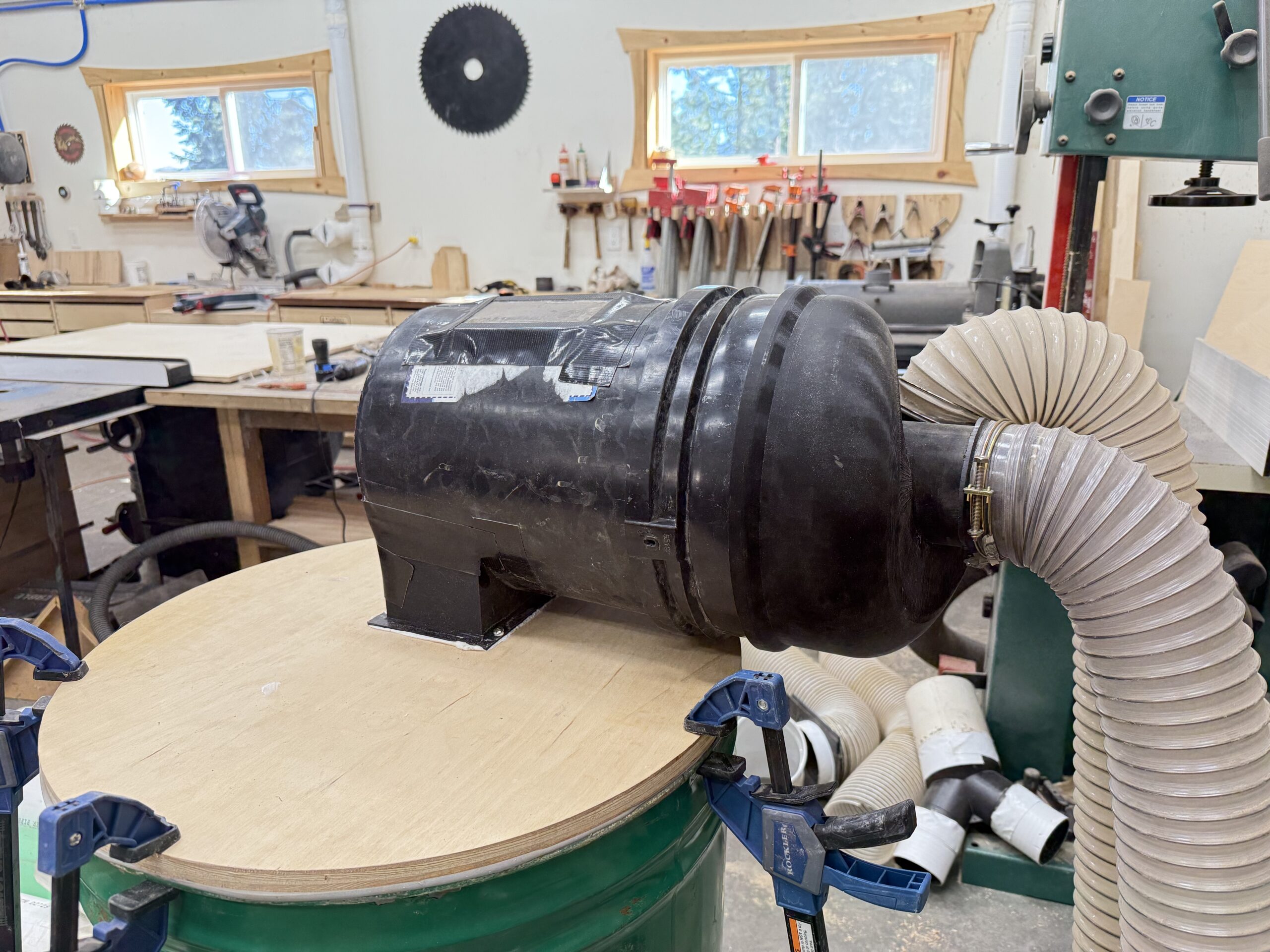 I put another capacitor in my existing motor and it seemed to be okay again. Back in 2023 I built a dust collector closet for the machine, and I was wondering if excessive heat was damaging the motor. I was also getting poor filtration; my small HVAC filter was frequently full of fine dust, and some fine dust was escaping out the cracks of the enclosure. The best place for a dust collector is outdoors, or at least venting outdoors, but I can’t do that in my climate. I decided to nix the closet and go for something DIY.