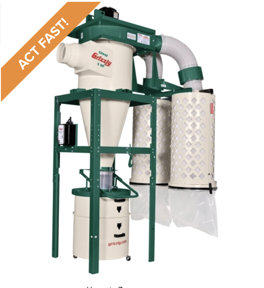 I quickly wanted a solution, and ordered a 5HP Oneida Dust Gorilla…but it wouldn’t ship for a month…so I cancelled the order, and ordered a 5HP Grizzly Cyclone Dust collector ($3700 plus tax/shipping), which would arrive in a week. I started to prep my shop for it…and I realized that the machine required a 40 Amp circuit and special cutoff switch. I also realized didn’t have a HEPA grade filter…and I really want good filtration. It just said “Filtration: 0.2-2 micron”, which I thought was close to HEPA, but after talking to Grizzly support I realized it would let through dust particles up to 2 microns into the air. Some of the worst stuff to breathe!